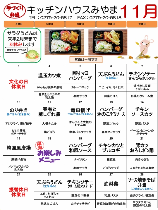 | 令和7年 11月のメニュー |